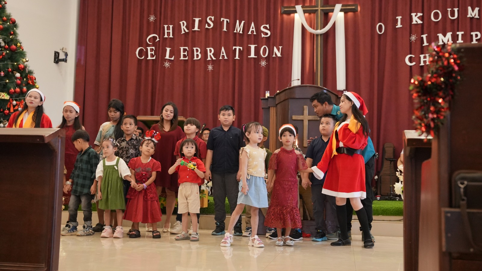 Ibadah perayaan Natal 2025 di Gereja POUK IMIP kian semarak dengan persembahan pujian dari jemaat dan anak-anak Sekolah Minggu serta pembagian sejumlah doorprize. Sukacita dalam ibadah bersama tersebut memang dirasakan seluruh jemaat yang hadir. Anton, salah satu karyawan perusahaan yang beraktivitas di kawasan IMIP mengaku bersyukur dapat merayakan kelahiran Yesus Kristus bersama saudara seiman lainnya, meski tahun ini tidak berkumpul bersama keluarga. “Kami tetap merasakan pemeliharaan Tuhan di sini. Perusahaan tempat kami bekerja juga terus beraktivitas dan semoga semakin baik ke depan,” harapnya. (*)